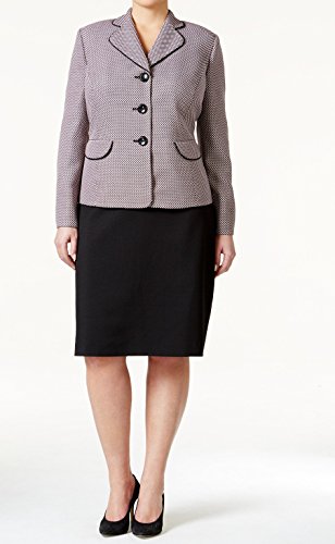 Le Suit Women's Plus Size Dot Jacquard Skirt Suit, Tutu Pink/Black, 22W