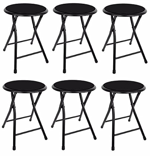 DLUX Set of 6 Small 18" Black Portable Lightweight Folding Stools Cushioned/Padded Seat With Safety Lock, 6pc