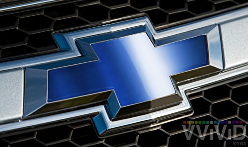 VVIVID Blue Chrome Auto Emblem Vinyl Wrap Overlay Cut-Your-Own Decal For Chevy Bowtie Grill, Rear Logo Diy Easy To Install 11.80 Inches x 4 Inches Sheets (x2)