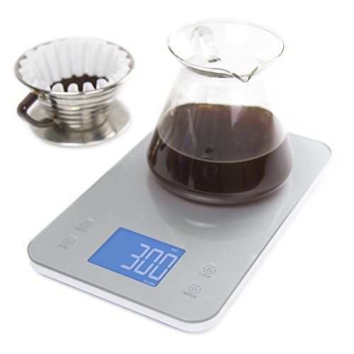 Nourish Digital Kitchen Food and Coffee Scale + Timer: Precision Sensors, Large Glass Weight Platform, and Large Backlit Display