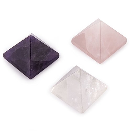 Crystal Allies Gallery 3 Piece Combo Set of 25mm Polished Amethyst, Rose Quartz, and Clear Quartz Crystal Pyramids