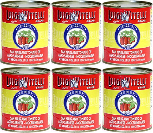 (Pack of 6) Luigi Vitelli Authentic Italian DOP Whole Peeled San Marzano Plum Tomatoes, 28 oz Cans