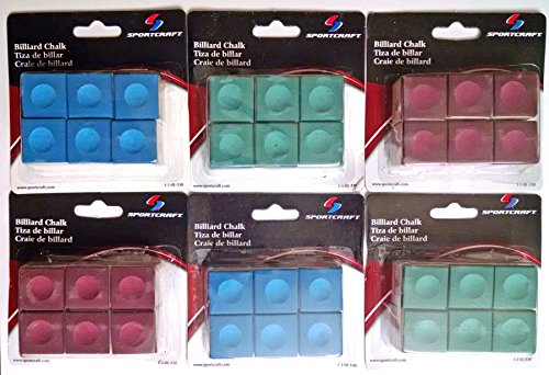 Box of 36 Cubes of Pool Cue Chalk by Sportcraft Billiard Supplies (Blue Chalk, Red chalk, Green chalk) - 36 pack