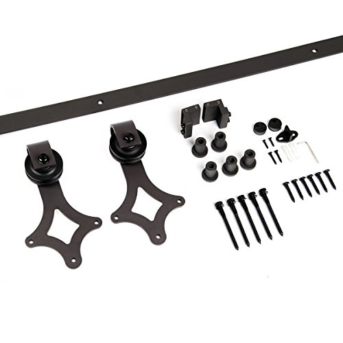 Unionline American 6.6 Ft Sliding Wood Barn Door Hardware Sliding Track Kit Steel Rhombic Diamond Style Dark Brown