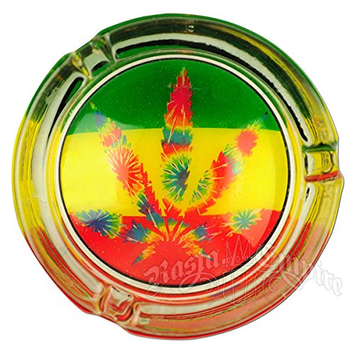 Glow in Dark Mary Jane Trippy Rasta Leaf Ashtray Collectors Edition with Bakebros Sticker