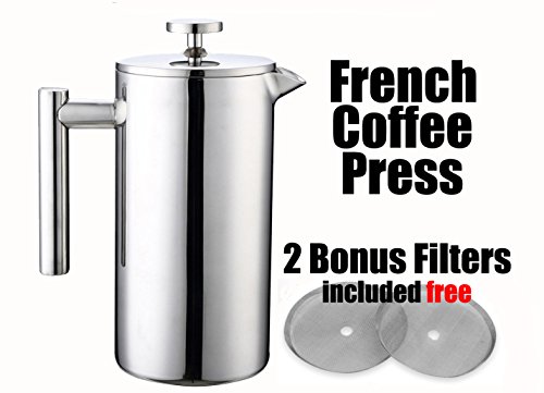 MSRM 34oz / 52oz(1 Liter / 1.5 Liter) European Double Wall Stainless Steel Coffee Press Pot French Press (1L)