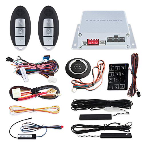 EASYGUARD EC002-NI Smart Key car Alarm System Remote Engine Start Push Button Start Touch Password Entry Universal Version Hopping Code FSK Technology