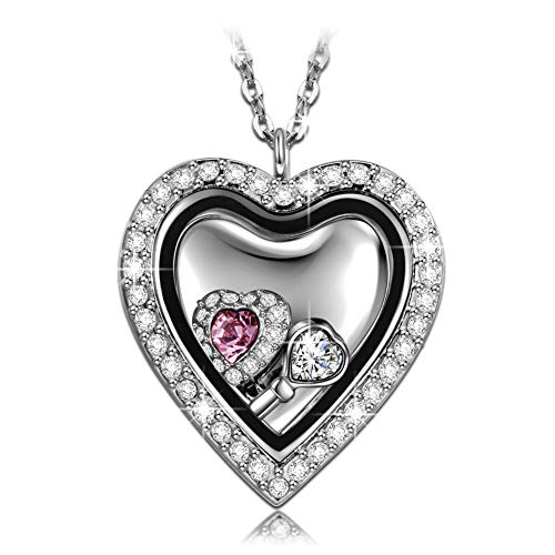 LADY COLOUR LadyColour Heart Locket Cubic Zirconia Pendant Necklace for Her Gifts for Her Birthday Gifts for Daughter Sister Mom Wife Gift for Mom Grandma