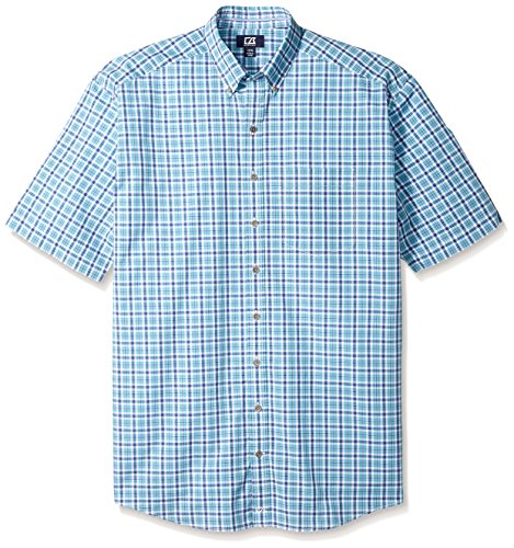Cutter & Buck Men's Big and Tall Big & Tall Short-Sleeve Mars Plaid Shirt, Channel, 1X