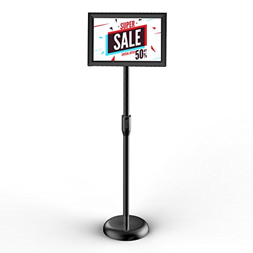 Smonet Adjustable Pedestal Sign Holder Floor Stand with Telescoping Post, Poster Frame for 8 X 11 Inches A4 Graphics Top-loading Vertical Design Black Metal