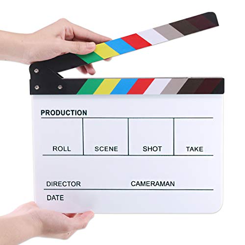 Hilitchi Acrylic Plastic Slate 25x30cm/10x12" Dry Erase Director's Film Clapboard Cut Action Scene Clapper Board Slate with Color Sticks