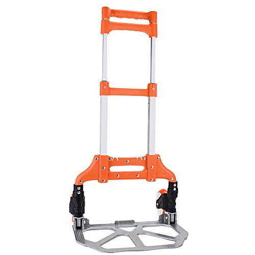 Heavy Duty Hand Truck & Dolly - 150 lb. Capacity Aluminum Utility Cart with Adjustable Shaft, Folds Down to Just 2" by Knack – Moving Equipment, Great for Lifting Boxes & Luggage (Orange)