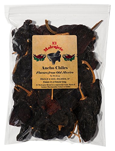 Dried Ancho Chiles Peppers El Molcajete Brand 8 oz Resealable Bag ‐ Mexican Recipes, Chilis, Tamales, Salsa, Chili, Meats, Soups, Mole, Stews & BBQ