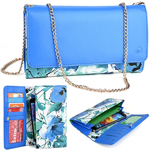 EnvyDeal LG K10 K20 Plus, K7 K8, V10, V20, Nexus 5X, Ray 5.5. LG G6, LG G5 G4 Pro G3 GX F310L, G Pro 2, LG X5, Stylus 2 Plus, Stylo 2 Phone Case, Blue/Green Ditsy Floral Print Crossbody Wallet