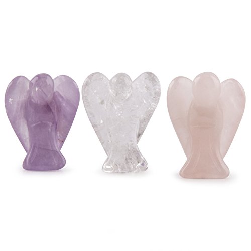 Crystal Allies Gallery: 3 Piece Combo Set Natural 1in Carved Amethyst, Rose Quartz, Clear Quartz Pocket Guardian Angel with Carrying Pouch