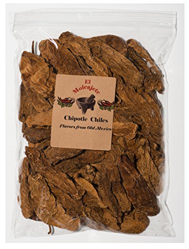 Whole Dried Chipotle Meco Chile 8 oz Resealable Bag ‐ El Molcajete Brand for Mexican Recipes, Tamales, Salsa, Chili, Meats, Soups, Stews & BBQ