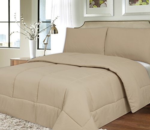 Sweet Home Collection Down Alternative Polyester Comforter Box Stitch Microfiber Bedding - Queen, Beige