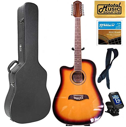 Oscar Schmidt LEFT HAND 12-String A/E Guitar, Active EQ, Sunburst, Case Bundle OD312CETSLH