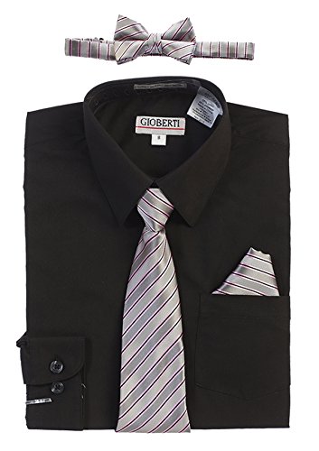 Gioberti Boy's Long Sleeve Dress Shirt + Stripe Tie, Bow Tie and Hanky