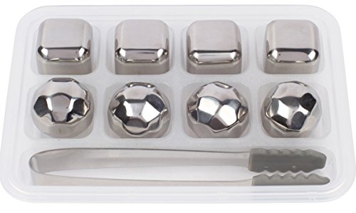 Xummit Whiskey Stones - Set of 8 Stainless Steel Whiskey Ice Cubes & Diamonds with Freezing Storage Tray and Tongs Reusable Wine Chillers, Whisky Chillers, Whiskey Chilling Rocks
