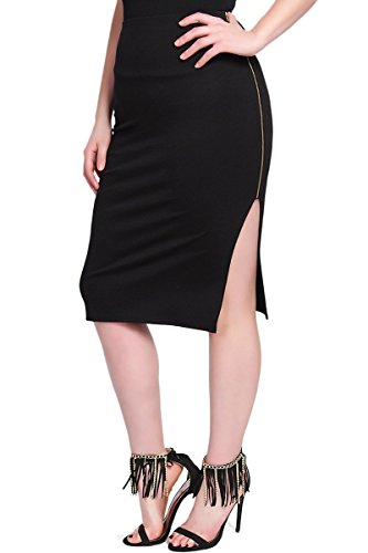 TheMogan Women's Side Zipper Curve Hugging Midi Pencil Skirts Black 1XL
