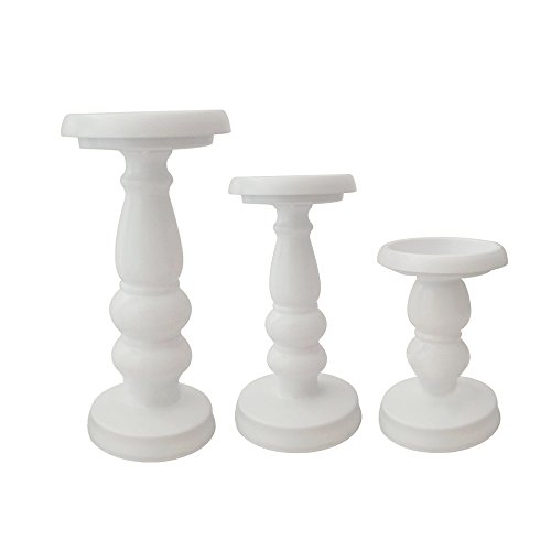 FengMicon White Metal Pillar Candle Holder Set of 3