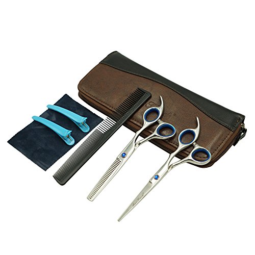 AuroTrends Professional Barber Razor Edge Hair Cutting Shears Set,Hairdressing Scissors and Hair Thinning Scissors/Shear Set+ Free Case/Hairclips/Comb/Cleaning Cloth (Blue)
