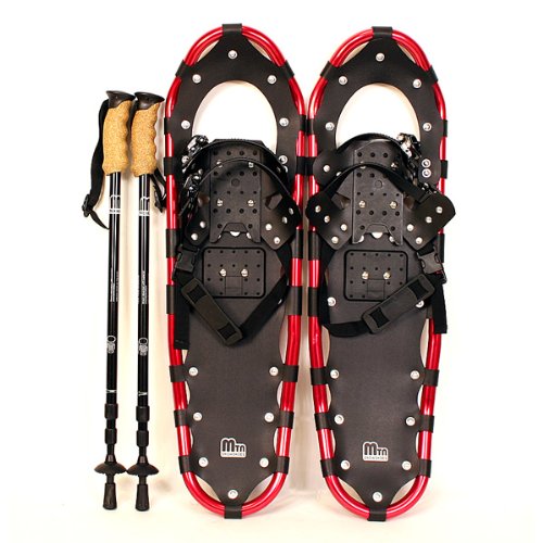 New MTN Man Woman Kid Youth Red Snowshoes with Black Nordic Pole+ Free Bag