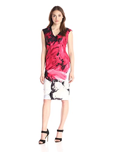 Donna Ricco Women's Short Sleeve Geometric Printed Sheath Midi Dress, Red/Grey, 8