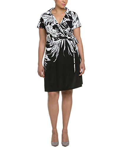 Donna Ricco Women's Plus Size Short Sleeve Floral Printed Wrap Dress, Bleached White, 14W