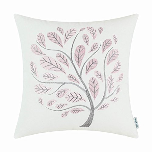 CaliTime Throw Pillow Cover Cotton Canvas 18 X 18 Inches, Leaves Tree Embroidered, Baby Pink