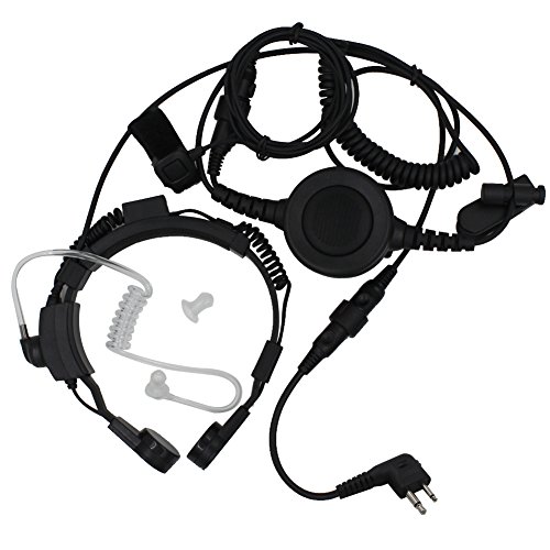 AOER Military Grade Tactical Throat Mic Headset/Earpiece with BIG Finger PTT for Motorola Walkie Talkie Two Way Radio 2 prong