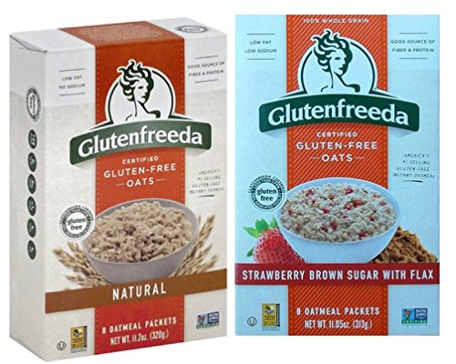Glutenfreeda Gluten Free Instant Oatmeal 2 Flavor Variety Bundle: (1) Glutenfreeda Strawberry Brown Sugar With Flax Oatmeal, and (1) Glutenfreeda Natural Oatmeal, 8 Ct. Ea. (2 Boxes)