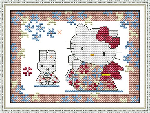 NKF Cross Stitch Kit, Kt cat (3), 11CT Stamped, 23cmX18cm or 8.97"X7.02"