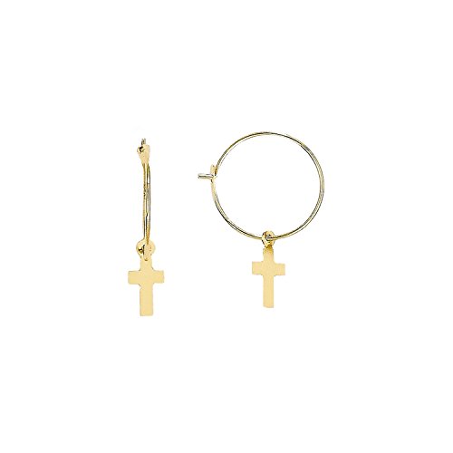 14k Yellow Gold Kids Madi K Endless Hoop w/Small Cross Earrings
