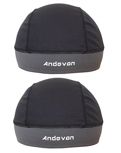 Andevan Helmet Liner Coolmax Fabric Skull Cap Style (Pack of 2 Pcs) (Black)
