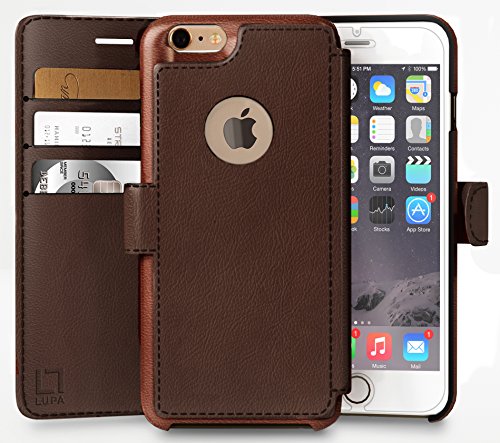 LUPA iPhone 6S Wallet case, iPhone 6 Wallet Case, Durable and Slim, Lightweight with Classic Design & Ultra-Strong Magnetic Closure, Faux Leather, Dark Brown, for Apple iPhone 6s/6