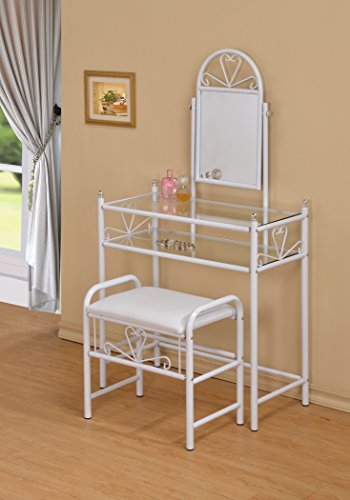 3-Piece Metal Make-Up Heart Mirror Vanity Dresser Table and Stool Set, White