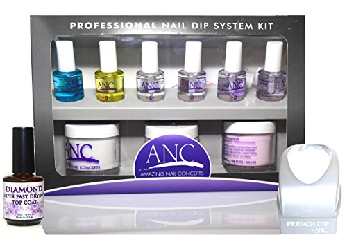 Nail Dipping Powder System Kit By Amazing Nail Concepts + 1 DIAMOND super fast drying Top Coat 0.5 oz FREE