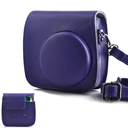 HelloHelio Classic Vintage PU Leather Compact Case with Strap for Fujifilm Instax Mini 9 / 8 / 8+ Instant Film Camera - Grape