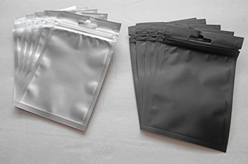 Clear/Black Hanging Foil Pouches, Mylar Ziplock Heat Seal Bags, Hang Hole, Safe Food Storage, Smell Proof Product Packaging, Durable Reusable Baggies (Herbs Seeds Tea Coffee Snacks) (100, 3.5x5)