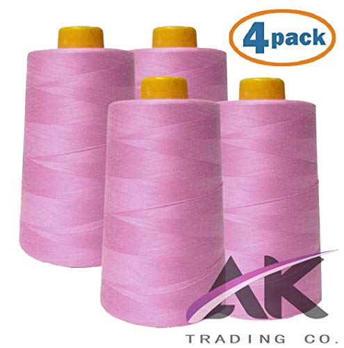 AK Trading 4-Pack Rose Pink All Purpose Sewing Thread Cones (6000 Yards Each) of High Tensile Polyester Thread Spools for Sewing, Serger Machines, Quilting, Overlock, Merrow and Embroidery