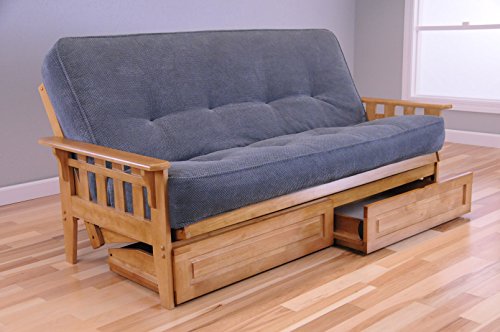 Wooden Futon Storage Drawers Mission Style Maple Color Light Wood Frame with Full Size Mattress