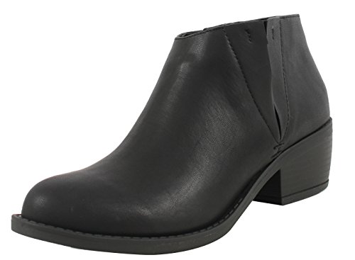 SODA Women's Zoie Faux Leather Round Toe Elastic Panel Ankle Boot Low Heel
