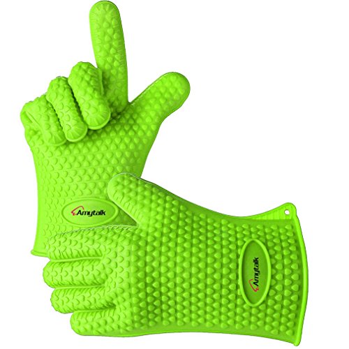 BBQ Gloves,Amytalk Heat Resistant Silicone BBQ Grill Oven Gloves for Cooking, Baking, Smoking & Potholder (Green)