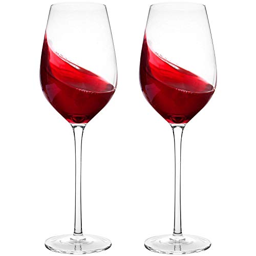 Hand Blown Crystal Wine Glasses - Bella Vino Standard Red/White Wine Glass Made from 100% Lead Free Premium Crystal Glass, Perfect for Any Occasion, Great Gift, Set of 2, Clear …