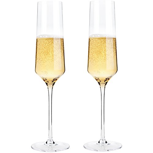 Hand Blown Crystal Champagne Flutes - Bella Vino Elegant Champagne Glasses Made from 100% Lead Free Premium Crystal Glass,Perfect for Any Occasion,Great Gift, 10", 7 Oz, Set of 2, Clear
