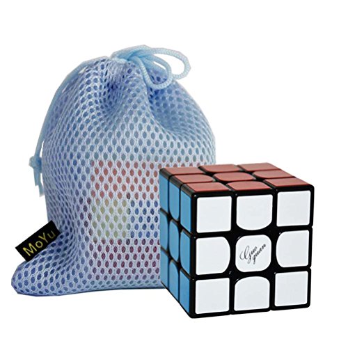 GoodPlay Moyu Guoguan Yuexiao 3x3 Speed Cube Sticker Intelligence Smooth Magic Cube Brain Teaser Puzzle Toys, Black + One Cube Bag