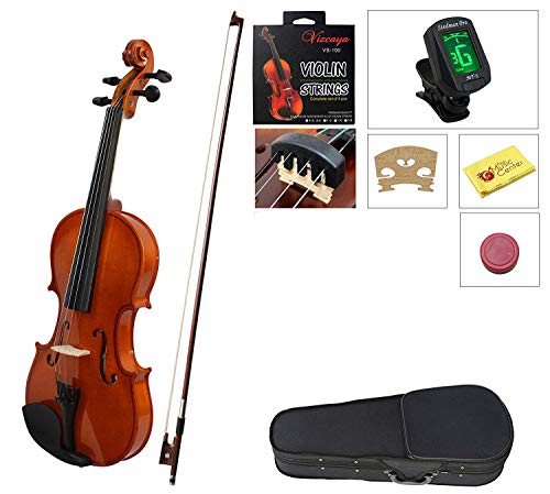 YMC 1/4 Size Handcrafted Solid Wood Student Violin Starter Kits(with Hard Case, Bow, Music Stand, Electronic Tuner, Bow Collimator, Shoulder Rest, Mute, Extra Strings, Polish Cloth, Rosin), Natural