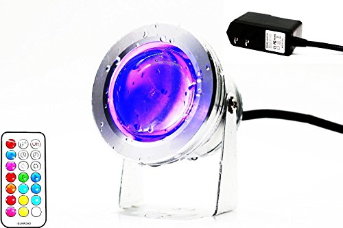 DLS&SH 10W 12V Memory Function RGB 16 Colors Changing LED Underwater Light Spotlight Flood Timing Setting for Fountain pond Landscape Garden Aquarium Safer Adapter 12V Waterproof Lamp (Silver)